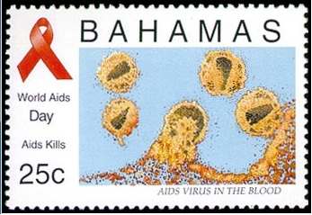 エイズ撲滅切手 HIVの電子顕微鏡写真 |