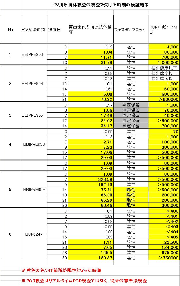 その為に、HIVに感染した血液を感染したときから、順次日にちを変えて採血して、検査をしていきます。
