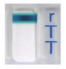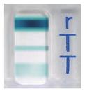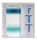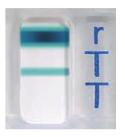 | HIV-1抗原陽性 コントロール(r)部分にブルーのライン 抗原検査部分(T)にブルーのライン |